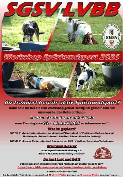 Wir richten am Sonnabend den 26. September 2026 unsere erste Spürhundsport-Prüfung aus.